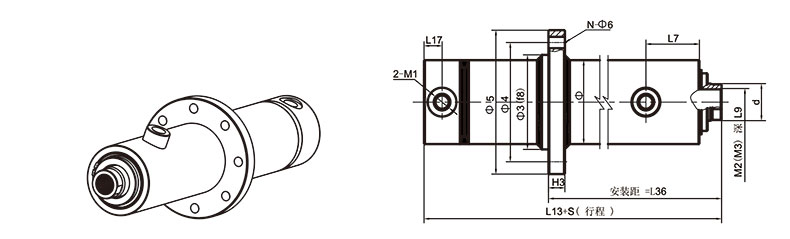 活塞桿端為外螺紋桿頭耳環(huán)連接