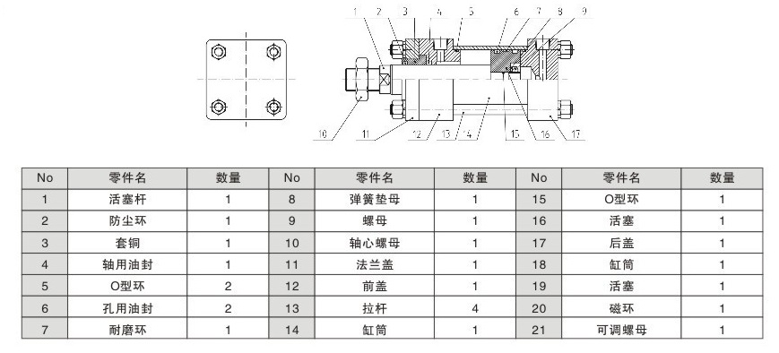 1.免潤滑性:該產(chǎn)品采用含油自潤滑軸承,使活塞桿無需加油潤滑;